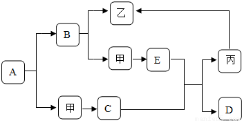 精英家教網(wǎng)如圖是初中化學中常見物質(zhì)間的轉(zhuǎn)化關系,其中甲、乙、丙為單質(zhì);A、B、C、D、E為化合物,且A與B的組成元素相同,D與E的組成元素也相同.已知C、丙均為黑色粉末,C和E在高溫條件下反應可生成丙和D,其余反應條件、部分反應物和生成物均已略去.試推斷: