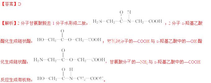 由甘氨酸(H2N—CH2—COOH)和α羥基乙酸(HO—CH2—COOH)所組成的混合物發(fā)生分子間脫水反應(yīng),其中生成物屬于兩分子脫水的直鏈狀產(chǎn)物有( )