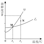 | C.M點(diǎn)表示t1℃時(shí),甲物質(zhì)和乙物質(zhì)的溶解度相同 |
