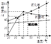 | 溶解度/g | 13.3 | 20.9 | 31.6 | 45.8 | 63.9 | 85.5 | 110 |
