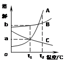 右圖為A、B、C三種固體物質(zhì)(不含結(jié)晶水)的溶解度曲線。下列說法錯誤的是