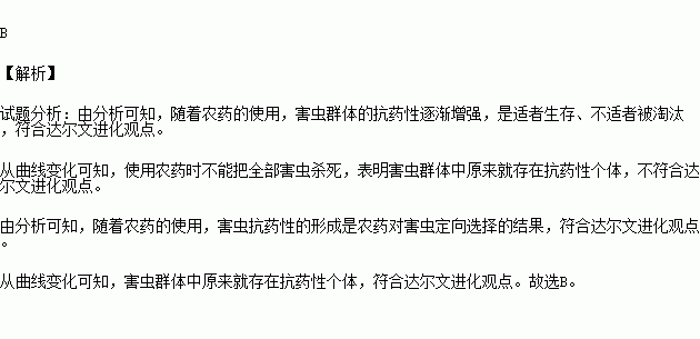 D.從曲線變化可知,害蟲群體中原來就存在抗藥性個體
