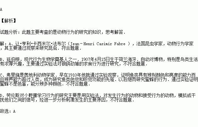 A.法布爾對昆蟲的研究