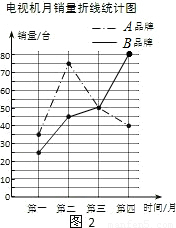 (2)在圖2中補(bǔ)全表示B品牌電視機(jī)月銷量的折線;