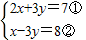 【答案】分析:兩式相加可化去y,再將x的值代入x-3y=8,解得即可.