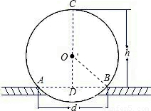 要測量一個鋼板上的小孔的直徑,通常采用間接的測量方法.如果用一個直徑為10mm的標(biāo)準(zhǔn)鋼珠放在小孔上,測的鋼珠頂端與小孔平面的距離h="8" mm(如圖),求此小孔的直徑d.![]()