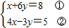 【答案】分析:方程組中兩個(gè)方程含y的項(xiàng)系數(shù)分別為6,-3,可采用加減消元法,將②×2+①消去y求x.
