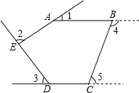如圖,五邊形ABCDE中,AB∥CD,∠1、∠2、∠3分別是∠BAE、∠AED、∠EDC的外角,則∠1+∠2+∠3等于