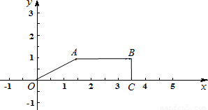 如圖所示,已知在直角梯形OABC中,AB∥OC,BC⊥x軸于點(diǎn)C,A(1,1)、B(3,1).動(dòng)點(diǎn)P從O點(diǎn)出發(fā),沿x軸正方向以每秒1個(gè)單位長(zhǎng)度的速度移動(dòng).過P點(diǎn)作PQ垂直于直線OA,垂足為Q.設(shè)P點(diǎn)移動(dòng)的時(shí)間為t秒(0<t<4),△OPQ與直角梯形OABC重疊部分的面積為S.