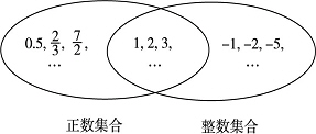 圖中兩個(gè)圓圈分別表示正數(shù)集合和整數(shù)集合,請寫出一些數(shù)(每個(gè)類別不少于3個(gè)數(shù)),并填入兩個(gè)圓圈及重疊部分.你能說出這個(gè)重疊部分表示什么數(shù)的集合嗎?