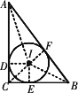 分析:由三角形的三邊長分別是 5 cm、12 cm、13 cm,可知△ABC是直角三角形,內(nèi)心與三角形的三個頂點的連線將原三角形分為三個小三角形,利用“三個小三角形的面積等于△ABC的面積”,可以求出內(nèi)切圓的半徑.解:如圖,設(shè)內(nèi)心為 I,⊙I的半徑為r,內(nèi)切圓與各邊的切點分別為D、E、F,連接IA、IB、IC、ID、IE、IF.
