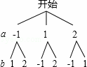 (2013•泰安)有三張正面分別寫有數(shù)字-1,1,2的卡片,它們背面完全相同,現(xiàn)將這三張卡片背面朝上洗勻后隨機(jī)抽取一張,以其正面數(shù)字作為a的值,然后再?gòu)氖S嗟膬蓮埧ㄆS機(jī)抽一張,以其正面的數(shù)字作為b的值,則點(diǎn)(a,b)在第二象限的概率為( 。