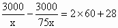 一臺(tái)電子收?qǐng)?bào)機(jī),它的譯電效率相當(dāng)人工譯電效率的75倍,譯電3000個(gè)字比人工少用2小時(shí)28分鐘.求這臺(tái)收?qǐng)?bào)機(jī)與人工每分鐘譯電的字?jǐn)?shù).