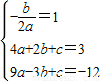 =1,將已知的兩點(diǎn)坐標(biāo)代入拋物線中,聯(lián)立三式即可求出拋物線的解析式.