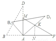 2.小紅同學(xué)用剪刀將△BCD與△MEF剪去,與小亮同學(xué)繼續(xù)探究.他們將△ABD繞點(diǎn)A順時(shí)針旋轉(zhuǎn)得△AB1D1,AD1交FM于點(diǎn)K(如圖2),設(shè)旋轉(zhuǎn)角為β(0°<β<90°),當(dāng)△AFK為等腰三角形時(shí),請(qǐng)直接寫出旋轉(zhuǎn)角β的度數(shù);