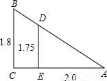 小剛和小明在太陽光下行走,小剛身高1.75米,他的影長(zhǎng)為2.0m,小剛比小明矮5cm,此刻小明的影長(zhǎng)是    m.