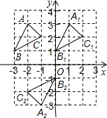 △ABC在如圖所示的平面直角坐標系中,將△ABC向右平移3個單位長度后得△A1B1C1,再將△A1B1C1繞點O旋轉(zhuǎn)180°后得到△A2B2C2.則下列說法正確的是( )