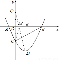 連接C′D交x軸于點M,根據(jù)軸對稱性及兩點之間線段最短可知,MC+MD的值最。