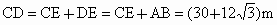如圖所示為住宅區(qū)內(nèi)的兩幢樓,它們的高AB=CD=30 m,兩樓間的距離BD=24 m.當(dāng)太陽光與水平線的夾角為30°時(shí),求甲樓的影子在乙樓上有多高?(精確到![]()