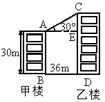 如圖所示,甲、乙兩樓相距36m,甲樓高度為30m,自甲樓樓頂看乙樓樓頂?shù)难鼋菫?0°,則乙樓的高度為________m.