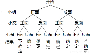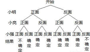 小明、小亮和小強三人準(zhǔn)備下象棋,他們約定用“拋硬幣”的游戲方式來確定哪兩個人先下棋,游戲規(guī)則如下: