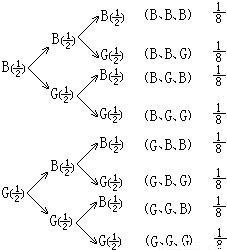 一個(gè)家庭有三個(gè)孩子,請(qǐng)用樹狀圖法分析并求出: