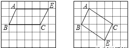 (2)在圖②中確定格點(diǎn)E,并畫(huà)出以A、B、C、E為頂點(diǎn)的四邊形,使其為中心對(duì)稱(chēng)圖形.(畫(huà)一個(gè)即可)