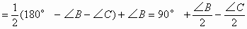 ∴∠EFD與∠B、∠C的關(guān)系是 (2)方法同(1)類似 結(jié)論:同(1) 以上兩題是有聯(lián)系的,點(diǎn)F在AE或它的延長(zhǎng)線上移動(dòng),形成以上兩種情況,當(dāng)點(diǎn)F正好與點(diǎn)A重合時(shí),如下圖所示,也有以上結(jié)論.請(qǐng)同學(xué)們自己想一想,這是為什么?