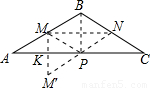 【答案】分析:本題首先要明確P點(diǎn)在何處,通過(guò)M關(guān)于AC的對(duì)稱(chēng)點(diǎn)M′,根據(jù)勾股定理就可求出MN的長(zhǎng),根據(jù)中位線的性質(zhì)及三角函數(shù)分別求出AB、BC、AC的長(zhǎng),從而得到△ABC的周長(zhǎng)