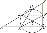 如圖在△ABC中,∠ACB=90°,D是AB的中點,以DC為直徑的⊙O交△ABC三邊于點G、E、F.