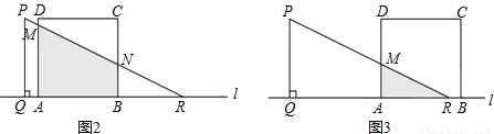 【答案】分析:(1)當(dāng)t=3秒時(shí),QB=3,BR=QR-QB=5.根據(jù)Rt△RBM∽R(shí)t△RQP中的成比例線段,可求得BM=.所以S=(QP+BM)•QB=(平方厘米).