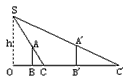 為了測量路燈(OS)的高度,把一根長1.5米的竹竿(AB)豎直立在水平地面上,測得竹竿的影子(BC)長為1米,然后拿竹竿向遠(yuǎn)離路燈方向走了3.2米(BB‘),再把竹竿豎立在地面上, 測得竹竿的影長(B‘C‘)為1.8米,求路燈離地面的高度.![]()