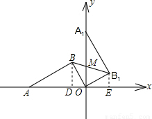 (2)根據(jù)旋轉(zhuǎn)的性質(zhì)即可得出B1的坐標(biāo)應(yīng)該是(2,1),根據(jù)B1的坐標(biāo),我們不難得出∠B1OA1的余弦值應(yīng)該是,而OB1=,因此OA1=5即A1的坐標(biāo)是(0,5).