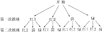 【小題2】 (2)第1次從袋中任意摸出l球(不放回),第2次再任意摸出1球,請你用畫樹狀圖或列表格的方法,求兩次都摸到紅球的概率. (5分)