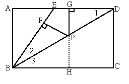 如圖,E是矩形ABCD邊AD上一點(diǎn),且BE=ED,P是對(duì)角線BD上任一點(diǎn),PF⊥BE于F,PG⊥AD于G,請(qǐng)你測(cè)量一下PF,PG,AB的長(zhǎng),猜想它們之間有什么關(guān)系?并說(shuō)明你的結(jié)論是正確的.