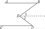 【答案】分析:首先過點E作EF∥AB,由AB∥CD,即可得EF∥AB∥CD,然后根據(jù)兩直線平行,內(nèi)錯角相等,即可求得答案.