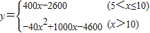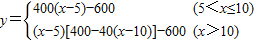 一快餐店試銷某種套餐,試銷一段時間后發(fā)現(xiàn),每份套餐的成本為5元,該店每天固定支出費用為600元(不含套餐成本).若每份售價不超過10元,每天可銷售400份;若每份售價超過10元,每提高1元,每天的銷售量就減少40份.為了便于結(jié)算,每份套餐的售價x(元)取整數(shù),用y(元)表示該店日凈收入.(日凈收入=每天的銷售額-套餐成本-每天固定支出)