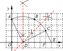 精英家教網(wǎng)如圖,在單位長(zhǎng)度為1的正方形網(wǎng)格中,一段圓弧經(jīng)過格點(diǎn)A、B、C.以點(diǎn)O為原點(diǎn)、豎直和水平方向?yàn)檩S、網(wǎng)格邊長(zhǎng)為單位長(zhǎng),建立平面直角坐標(biāo)系,該圓弧所在圓的圓心為點(diǎn)D.