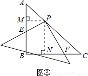 (3)過點(diǎn)P做PM⊥AB,PN⊥BC,結(jié)合圖形推出△PNF∽△PME,△APM∽△PNC,繼而推出PM:PN=PE:PF,PM:PN=AP:PC,根據(jù)已知條件即可推出PA:AC=1:4得出PE:PF=1:3.
