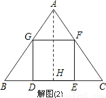 2a.設(shè)正方形的邊長(zhǎng)為x,作△ABC的高AH,可以求出AH的長(zhǎng),然后根據(jù)△AGF∽△ABC利用其對(duì)應(yīng)邊成比例