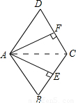 在菱形ABCD中,AE⊥BC于點(diǎn)E,AF⊥CD于點(diǎn)F,且E、F分別為BC、CD的中點(diǎn),則∠EAF等于    度.