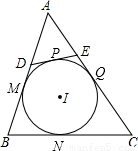 設(shè)⊙I與△ABC的三邊AB、BC、AC的切點(diǎn)為M、N、Q,切DE為P,