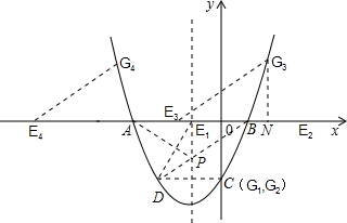 ②BD∥EG;根據(jù)平行四邊形的性質(zhì)知,此時G、D的縱坐標(biāo)互為相反數(shù),由此可求得G點的縱坐標(biāo),將其代入拋物線的解析式中即可求得G點的坐標(biāo);那么將G點的橫坐標(biāo)減去3(B、D橫坐標(biāo)差的絕對值),即可得到兩個符合條件的E點坐標(biāo);