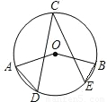 【答案】分析:根據(jù)圓心角與弧的關系及圓周角定理不難求得∠D+∠E的度數(shù).