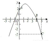 解答:解:(1)由圖象,可知A(0,2),B(4,0),C(5,-3),
