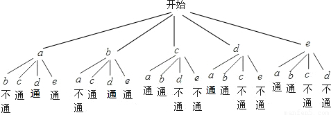 精英家教網如圖所示,有一電路AB是由圖示的開關控制,閉合a,b,c,d,e五個開關中的任意兩個開關,使電路形成通路.則使電路形成通路的概率是