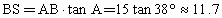 一艘輪船在A處觀測燈塔S在船的北偏東38°,輪船向正北航行15km后到達(dá)B處,這時(shí)燈塔S恰好在船的正東方向.求燈塔S與B處的距離(精確到0.1km).