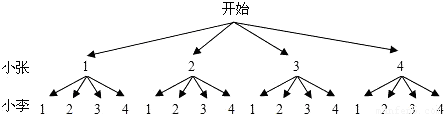 | 小李拋到的數(shù)字 小張拋到的數(shù)字 | 1 | 2 | 3 | 4 |