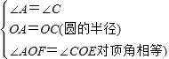 ∠AOF=∠COE,所以∠A=∠C,(1分)