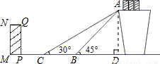 (2)如果需要在貨物著地點C的左側(cè)留出2米的通道,試判斷距離B點4米的貨物MNQP是否需要挪走,并說明理由.(說明:(1)(2)的計算結(jié)果精確到0.1米,參考數(shù)據(jù):